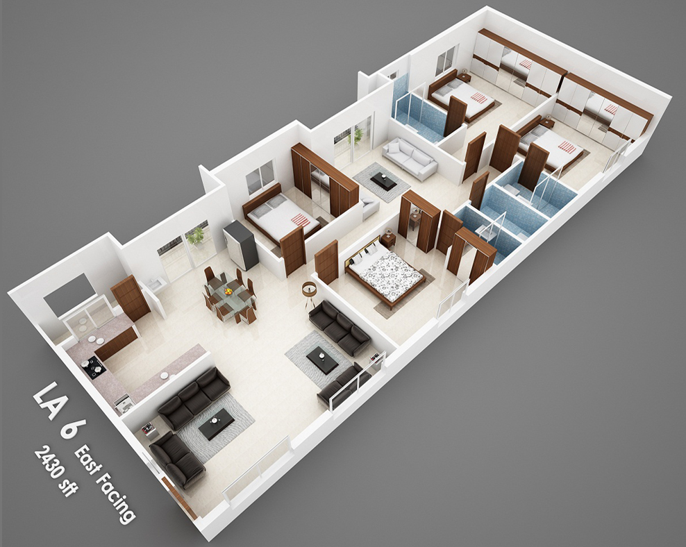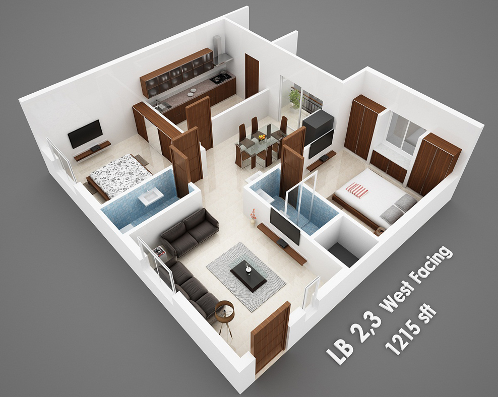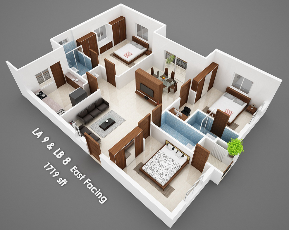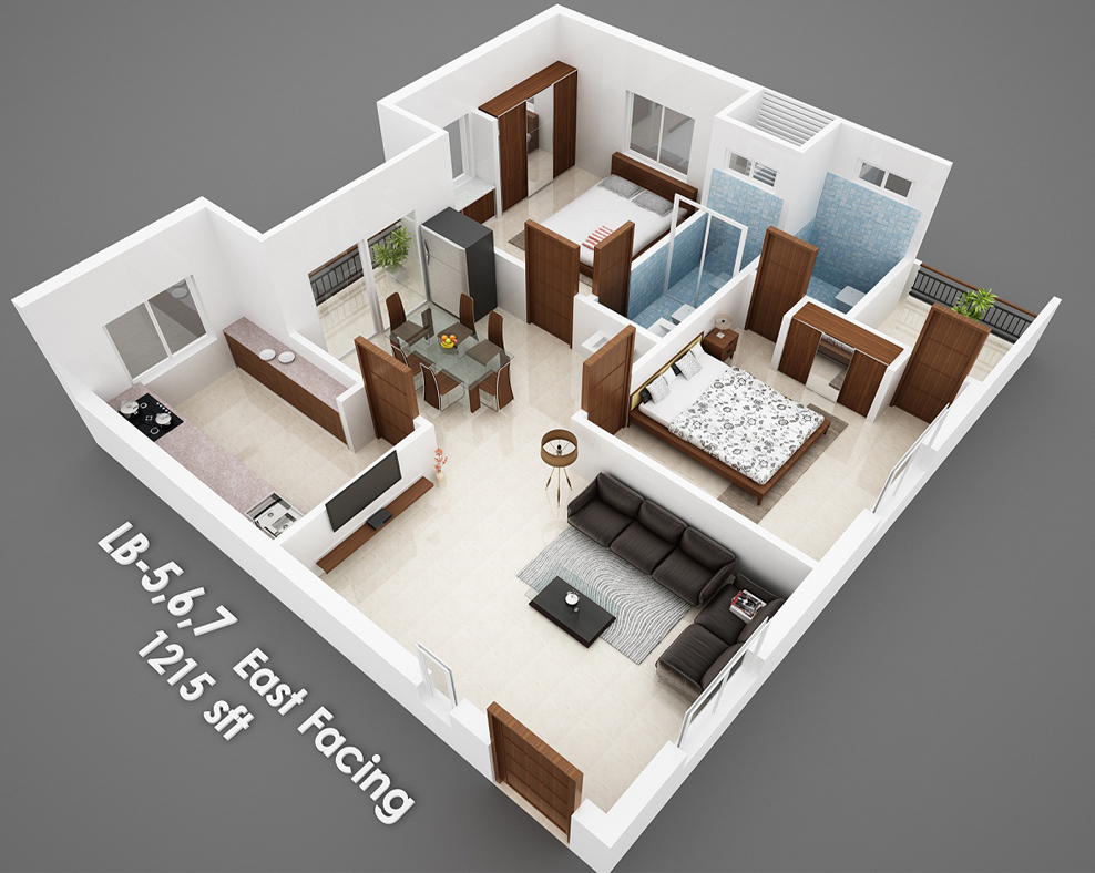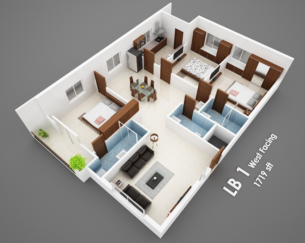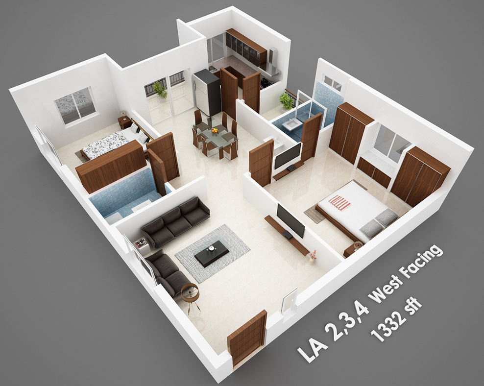 Isometric Views of the Flats in 'Vijaya Meadows'.