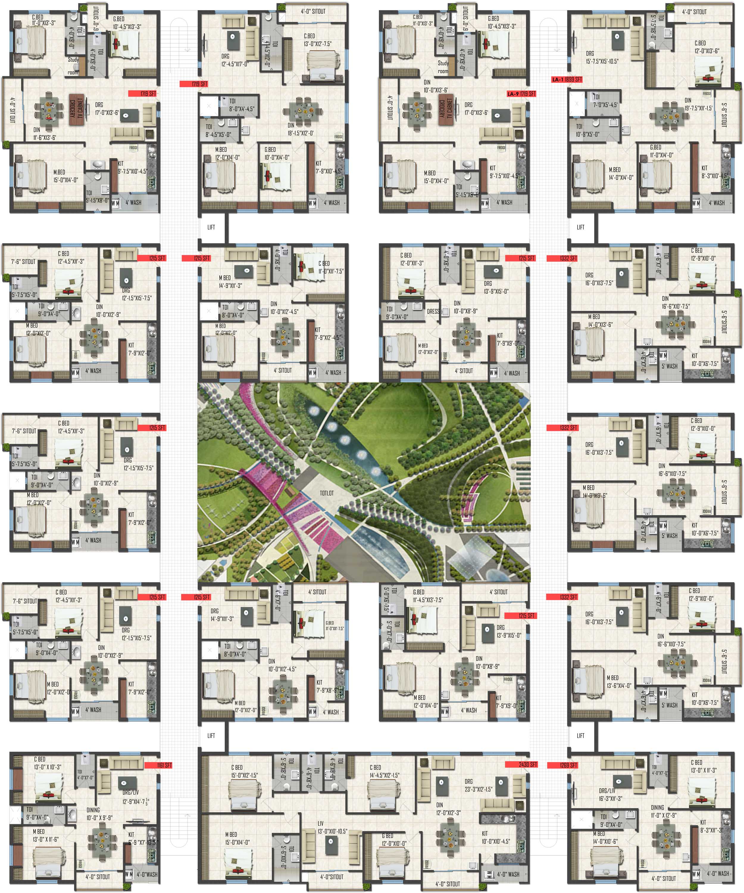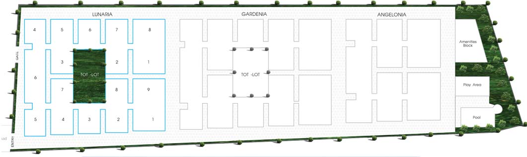 INFRASTRUCTURE: Centralized gas lines connected to kitchens | Underground drainage system | Water and sewerage treatment plant | Underground electrical & communication cabling | Compound wall all around the layout | Rain water harvesting pits | Internet & Intercom provision