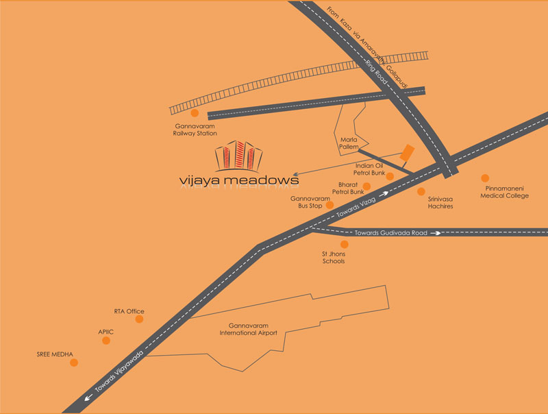HIGHLIGHTS: About 3 Kms from the Airport, L&T and Hitech City | About 1.5 kms from Pinnamananeni Siddhartha Medical College | About 1 km from Gannavaram Bus complex and Ring Road Junction